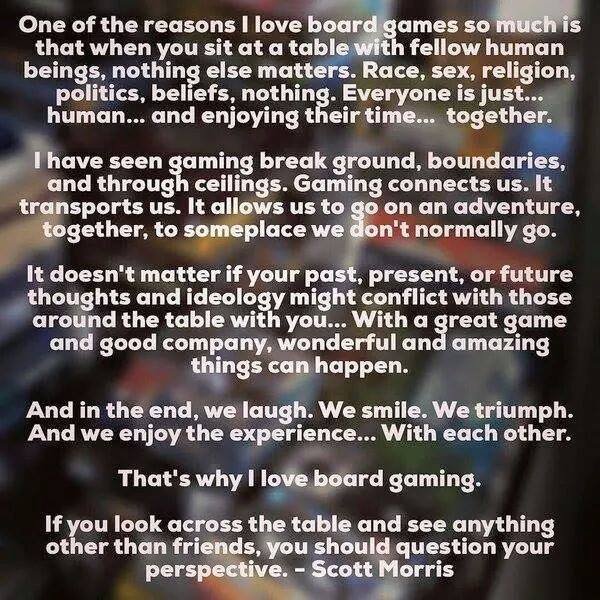 AllBrilliant quote on the power of board gaming to connect people Posted on20/05/201820/05/2018AuthorstephenScott Morris is an RPG designer and the President of Passport games studio.Share this:Tweet Click to email a link to a friend (Opens in new window) Email Click to share on Reddit (Opens in new window) Reddit Click to share on Threads (Opens in new window) Threads Click to share on WhatsApp (Opens in new window) WhatsApp Click to share on Bluesky (Opens in new window) Bluesky Related
