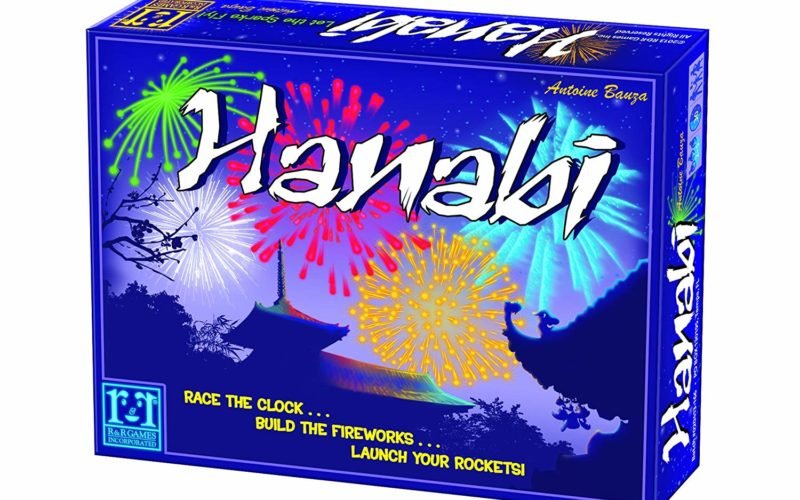 Hanabi is a simple but challenging set collection game. Every player has a handful of cards, and each card will have a colour and a number on it. The aim of the game is to make a pile of the cards of the same colour, going from 1 to 5. So you just put the red 1 down, then the red 2, red 3, red 4, red 5. Really easy stuff.